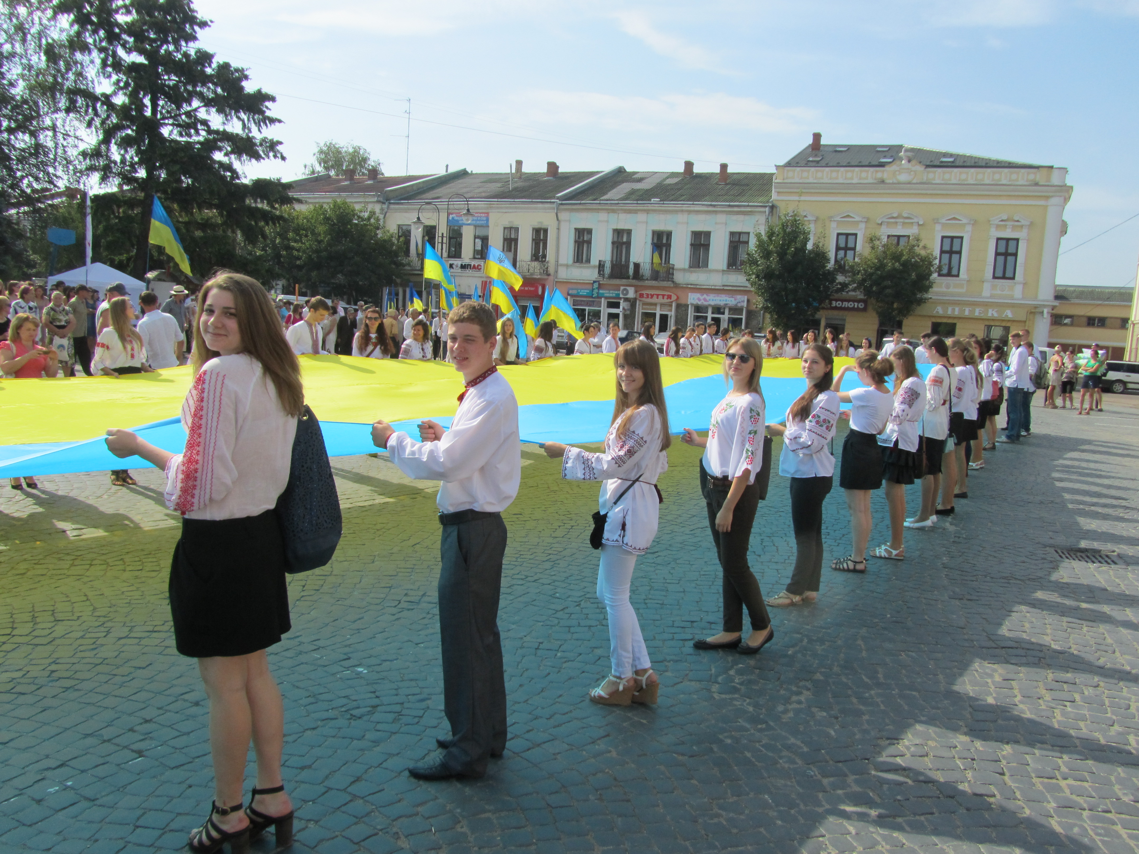 Сьогодні у нашому ліцеї відбувся флешмоб "Зроби фото з хусткою".